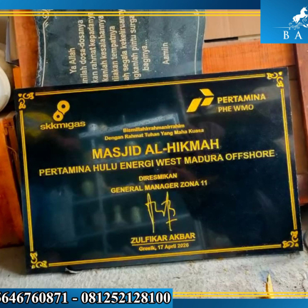 Marmer Prasasti Peresmian Marmer Prasasti Peresmian – Banyak bangunan yang menggunakan Prasasti sebagai identitas dari bangunan tersebut. Memang pada umumnya Prasasti digunakan sebagai Prasasti sebuah bangunan, seperti pembangunan gedung, masjid, kantor, hotel, restoran, dan lain – lain. Oleh karena itu Prasasti Peresmian memang digunakan sebagai tanda bahwa pembangunan telah selesai dibangun. Disini kami melayani pembuatan…